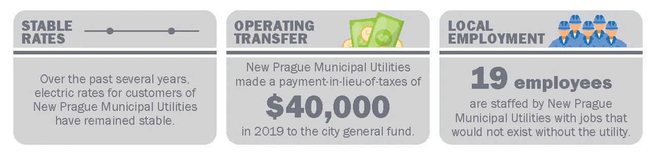 New Prague Municipal Utilities is an engine for economic development — be it through local job creation or an operating transfer to the city. Local utility ownership helps ensure that its customers’ dollars stay in the community.